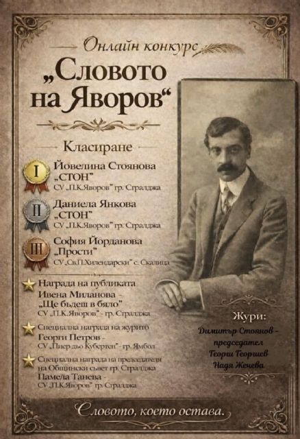 28.1.2026 Онлайн конкурс "Словото на Яворов" - награждаване |