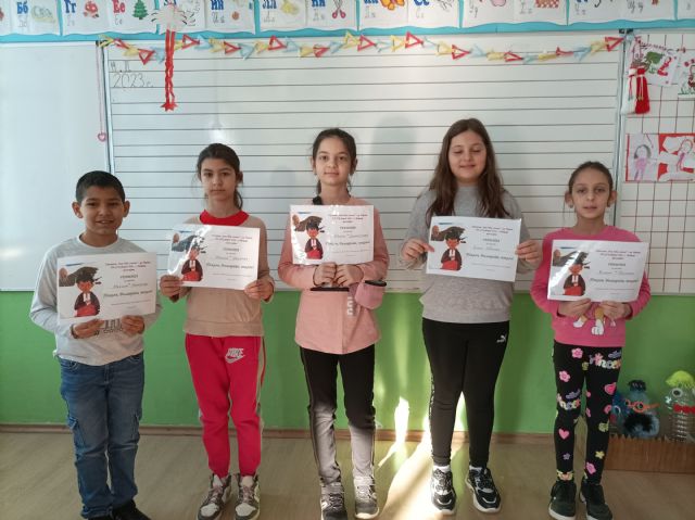 В първия кръг на състезанието със знанията си се изявиха шестокласниците Ани Михайлова, Цветелина Стоянова и седмокласниците Антоар Санчез, Силвия Тодорова и Станислава Първанова, всички отличени със златни и сребърни медали, и грамоти.