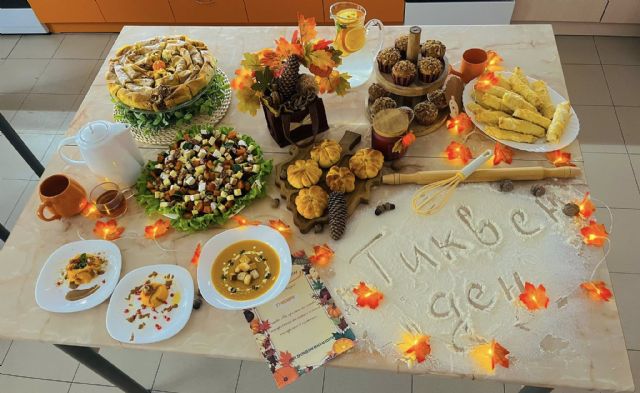 Ученици и учители в кабинета по 🍽️готварство сътвориха истински празник на вкусовете: 🍲крем супа от тиква, 🥙свежа салата с тиква, 🥯малки питки „тиквички“, 🧁мъфини, 🥧тиквеник и дори 🍮панакота с тиква!